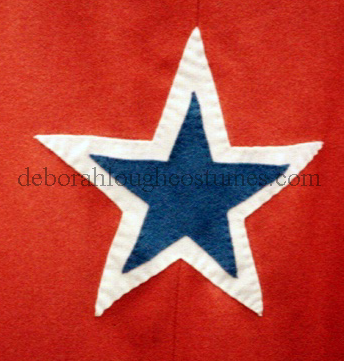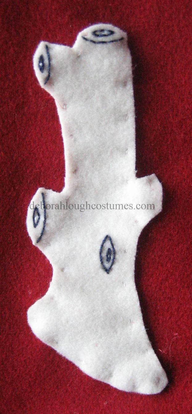 | A white ragged staff, cut from wool, with hand stitched detail. |