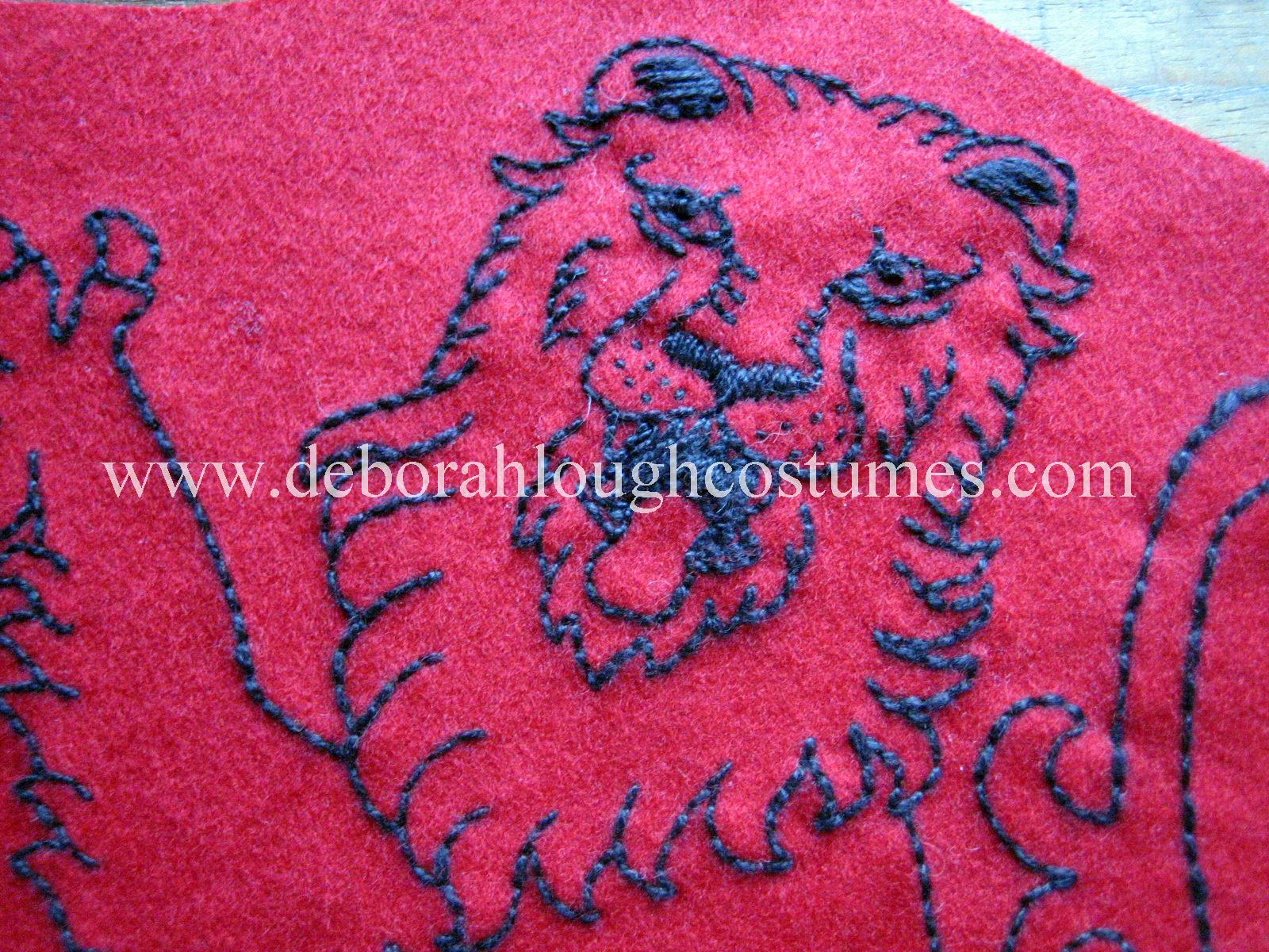 | A lion rampant guardant. Go to the page on surcoats to see the lion attached! The actual lion design is all hand embroidered. |