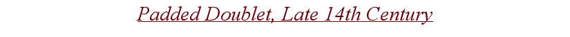 | Another 14th century garment with lots of buttons (and lots of buttonholes). This is cut to a pattern based on the extant garment, known as the pourpoint of Charles de Blois. I am including this padding in our costume website, because although this particular version is made as a piece of padded armour, in reality, the pourpoint of Charles de Blois is not a military garment at all, but a civilian doublet, padded to give a particular shape. The waistline in particular is described as maintaining a 'vice-like' grip on the wearer.* The extant doublet is made up of sandwiches of fabric padded with raw cotton (although I've used wool fleece in this instance). The doublet is completely hand finished (including the quilting on the external sandwich, and all those buttonholes again!). The myriad buttons are hand made cloth ball buttons. (For which, out of interest, we don't charge extra!) For more information on this garment, please go to our padded armour website. *By Stella Mary Newton, in her excellent book, 'Fashion in the Age of the Black Prince'. |
