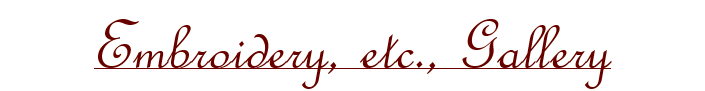 | Pictures of some of my embroidered work appear on the following pages. Some of the pages may be of a selection of garments or outfits, some may be of a single garment, outfit, or group of garments. To look at a costume in depth, click on the picture or title. |
