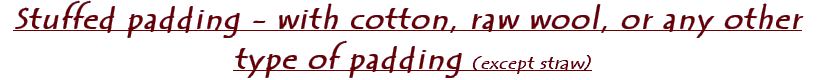 | Do not put into a washing machine! Do not have dry cleaned!! Definitely do not tumble dry!!! This type of padding is washable, but only by hand. The best place to wash it is the bath or shower. Any waterproof vessel that's large enough will do, but, obviously, these have the advantage of running water. Use a mild detergent - old fashioned soap flakes or something like Ecover or Persil hand liquid are good. Put the piece of padding into the bath or shower and fill with enough hand hot water to cover the garment. Sloosh it about a bit (i.e. agitate it) - get in and use your feet if necessary! Drain the water and repeat as needed. Rinse till all the detergent you can see is gone, and then rinse again for good measure (this will take a while, and will seem infernally boring, but any detergent left in the fabric can cause discolouration). Allow the garment to drain till it begins to stop dripping, then put it somewhere warm to dry - not over / in front of a fire or radiator (that can make the linen fibres more brittle), and don't use a tumble dryer or anything remotely similar (it will shrink)! The sun is fine though... NB - if your garment has metal fastenings (eg, buttons, hooks and eyes, etc), you may want to consider removing them for washing to avoid tarnishing. Buckles can be covered with cling film (Seran wrap to Americans!) if you make sure it's secure enough not to come loose. Obviously, remove all points. |