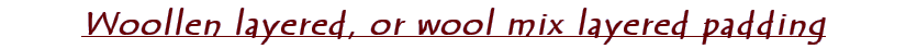 | Instructions are almost exactly the same as with layered padding, but make the water cooler - luke warm or tepid - and if possible use a detergent designed for woollens, or soap flakes (pre-dissolved). Do not dry clean, do not machine wash, do not tumble dry, and do not dry near direct sources of heat. See above note regarding fastenings. |
